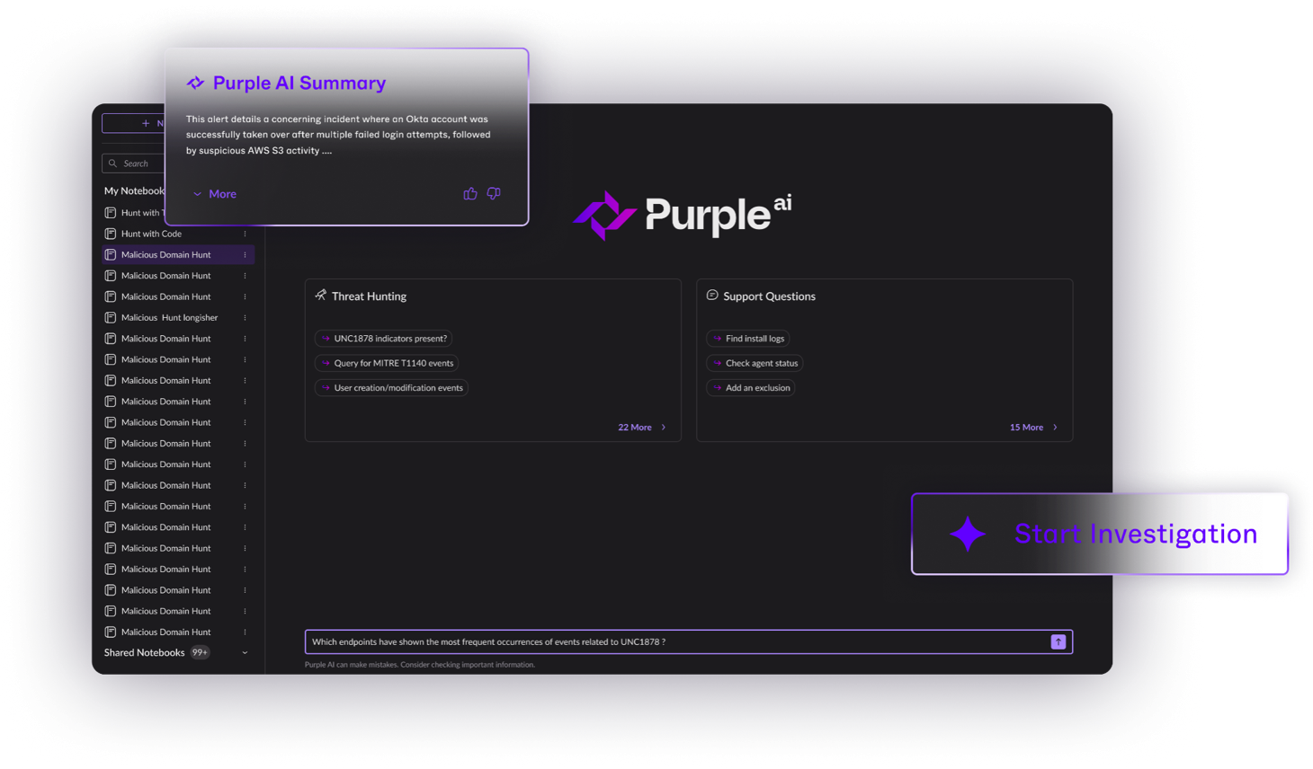 Rapidly accelerate triage, investigation, threat hunting, and response operations using Purple AI powered automation.