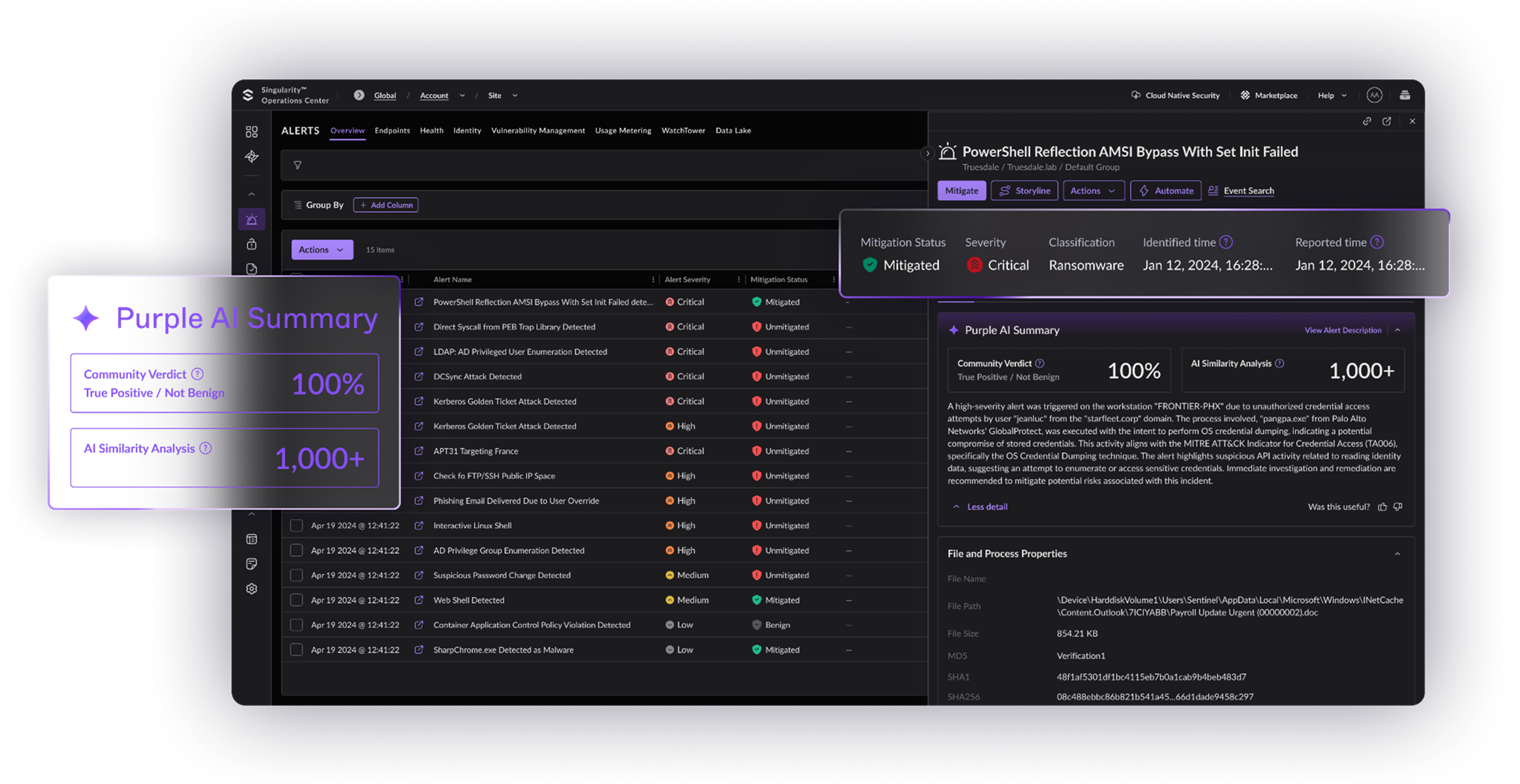 Purpose built AI powers detections, recommended actions, and automated response to stop advanced threats faster and accurately.